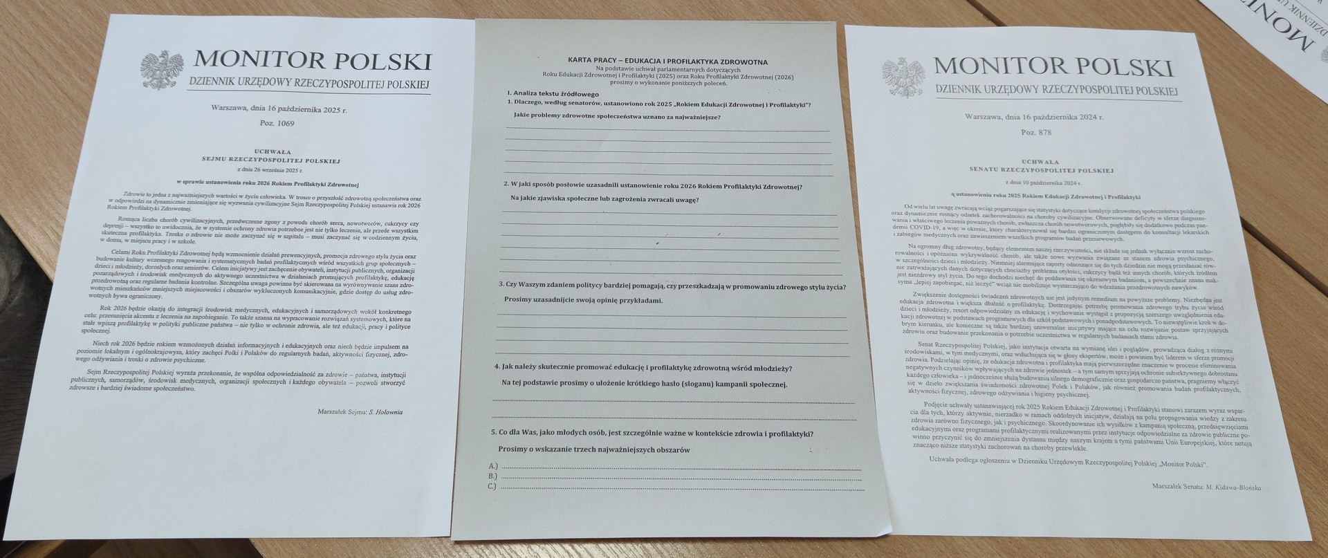 Istotnym elementem spotkania były uchwały parlamentarne ustanawiające rok 2025 Rokiem Edukacji Zdrowotnej i Profilaktyki oraz rok 2026 Rokiem Profilaktyki Zdrowotnej. Uczniowie, w ramach zajęć z edukacji zdrowotnej, analizowali treść i uzasadnienie uchwał podjętych przez Sejm i Senat RP.