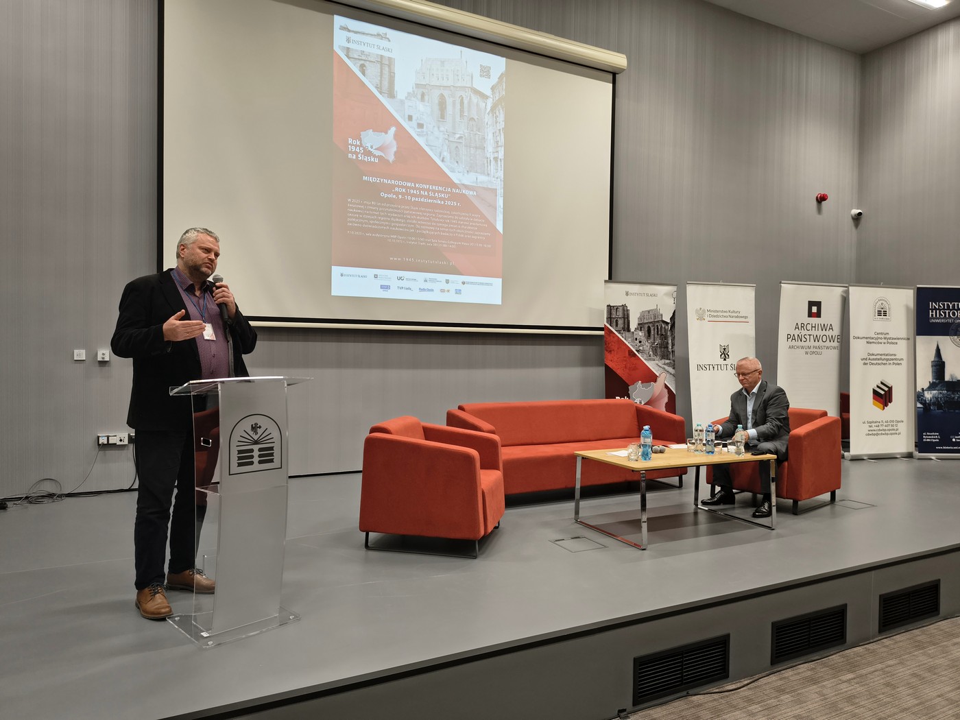 W ubiegłym tygodniu, 9 i 10 października 2025 r. odbyła się w Opolu międzynarodowa konferencja naukowa „Rok 1945 na Śląsku”. Konferencja ta była kolejnym wydarzeniem w ramach rozpoczętego w marcu br. projektu o tej samej nazwie. Twórcy projektu: Instytut Śląski, Archiwum Państwowe w Opolu i Instytut Historii Uniwersytetu Opolskiego postanowili uczcić 80. rocznicę wydarzeń roku 1945 na Śląsku i przy tej okazji powrócić do rozmowy o tym wyjątkowym dla naszego regionu czasie, We współpracy z Wojewódzką Biblioteką Publiczną w Opolu oraz Centrum Wystawienniczo-Dokumentacyjnym Niemców w Polsce zorganizowano międzynarodową konferencję naukową z udziałem wielu uznanych naukowców oraz młodych badaczy – studentów, doktorantów i pasjonatów historii regionalnej, która pozwoliła zapoznać się z najnowszym stanem badań w temacie wydarzeń roku 1945 na Śląsku, uwzględniając różne perspektywy.