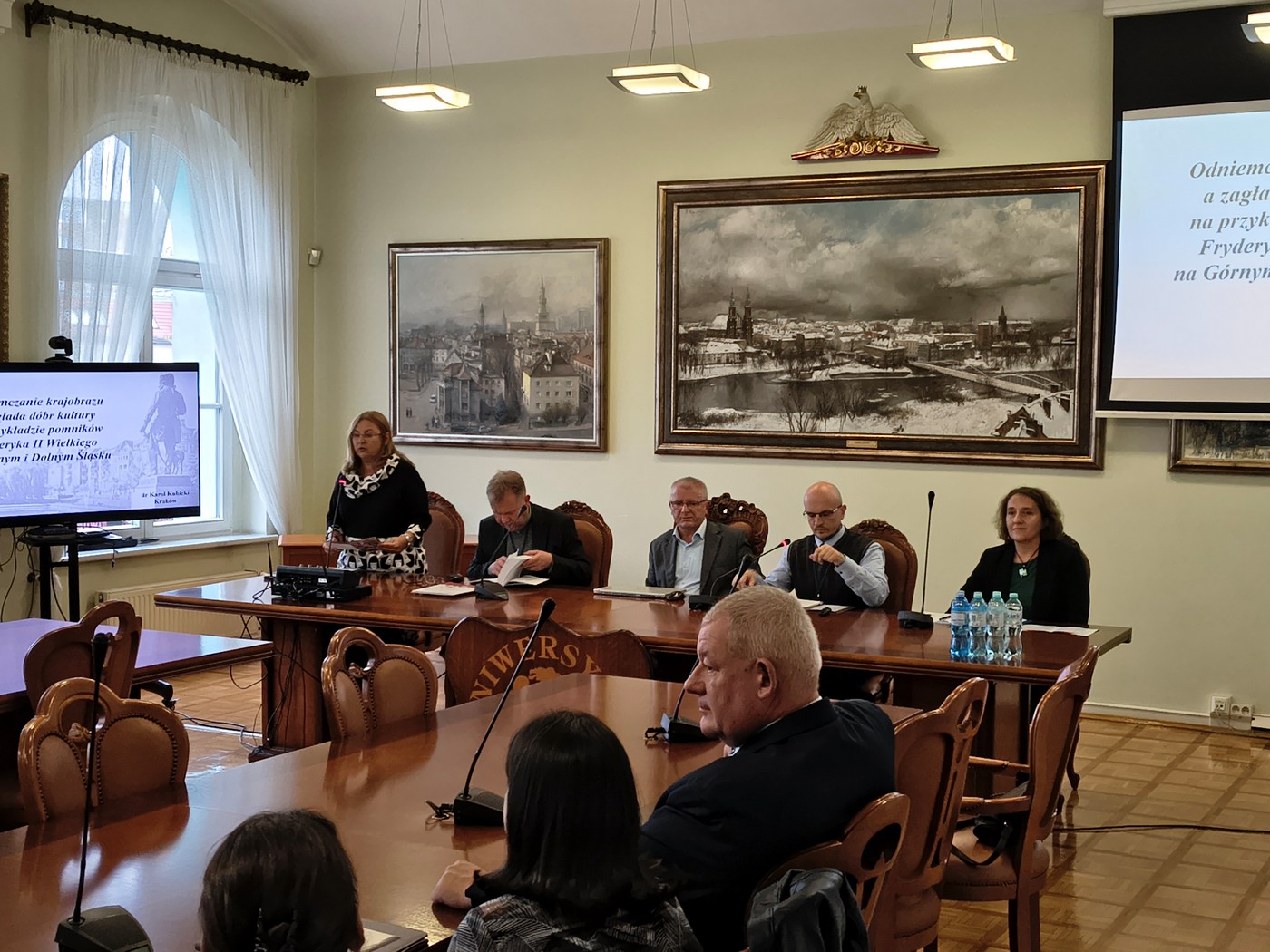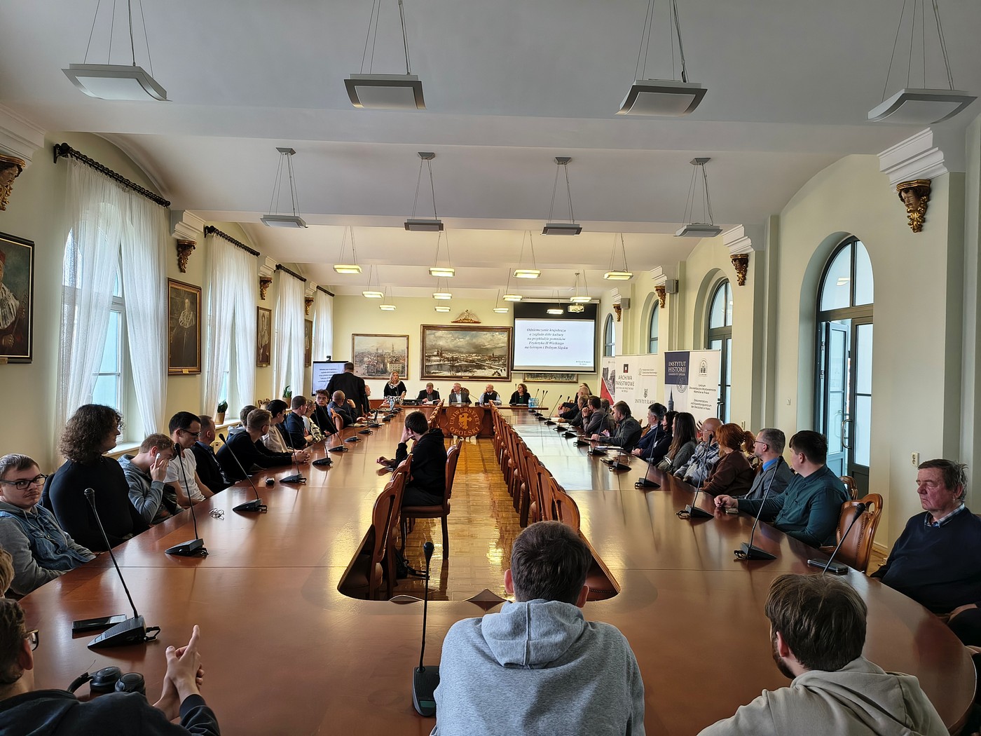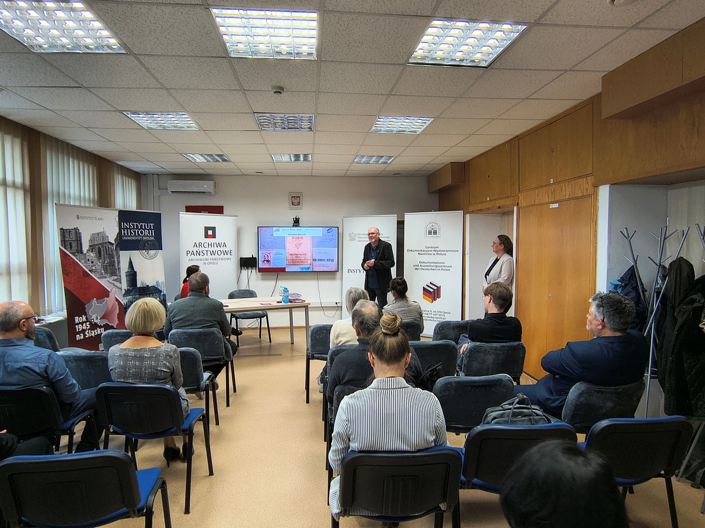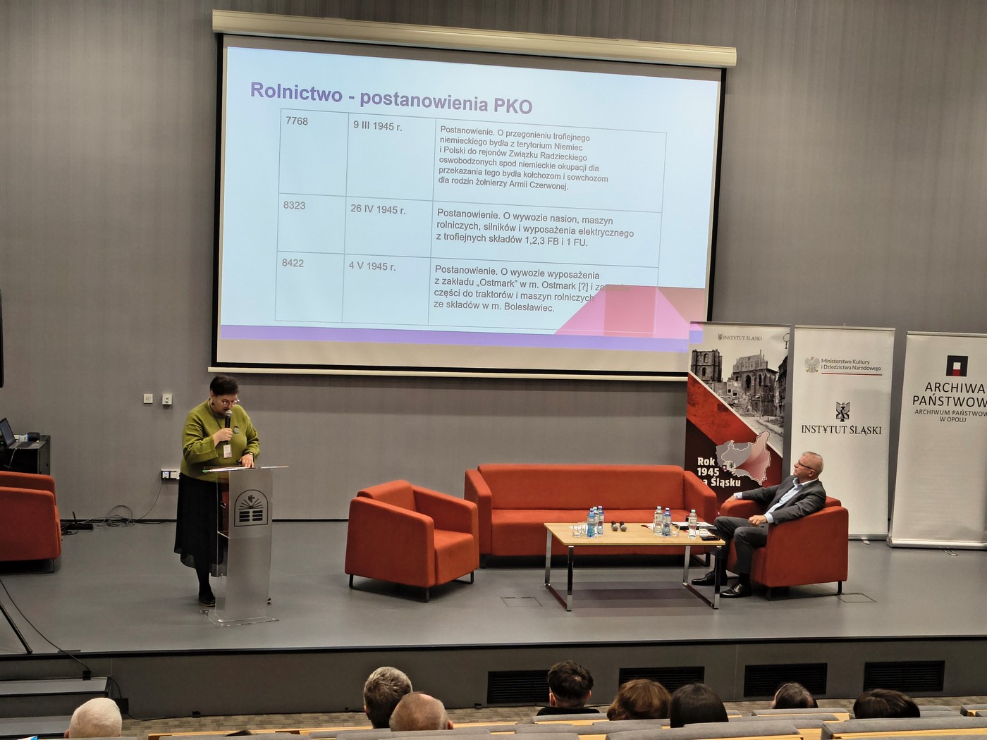Podczas dwóch dni obrad mieliśmy przyjemność gościć licznie zgromadzoną publiczność, która miała okazję zapoznać się z wnioskami z badań uznanych naukowców, uatrakcyjnionych prezentacjami multimedialnymi. Równie ciekawe były wypowiedzi i prezentowane materiały podczas sesji dla młodych badaczy, co szczególnie cieszy Organizatorów i pokazuje, że temat roku 1945 na Śląsku jest nadal aktualny, a co za tym idzie chętnie podejmowany w badaniach naukowych przez młodych pasjonatów i naukowców.